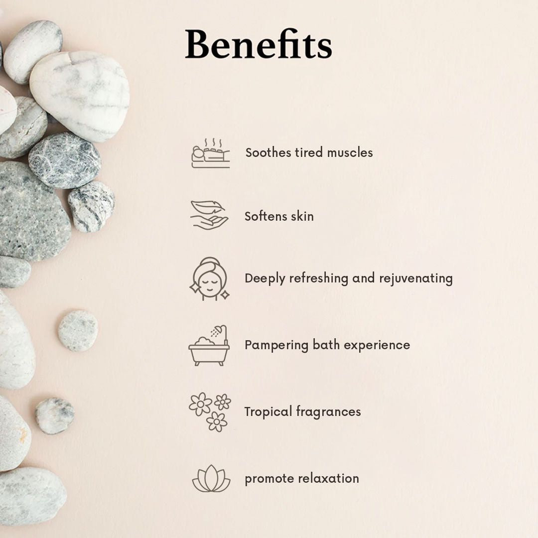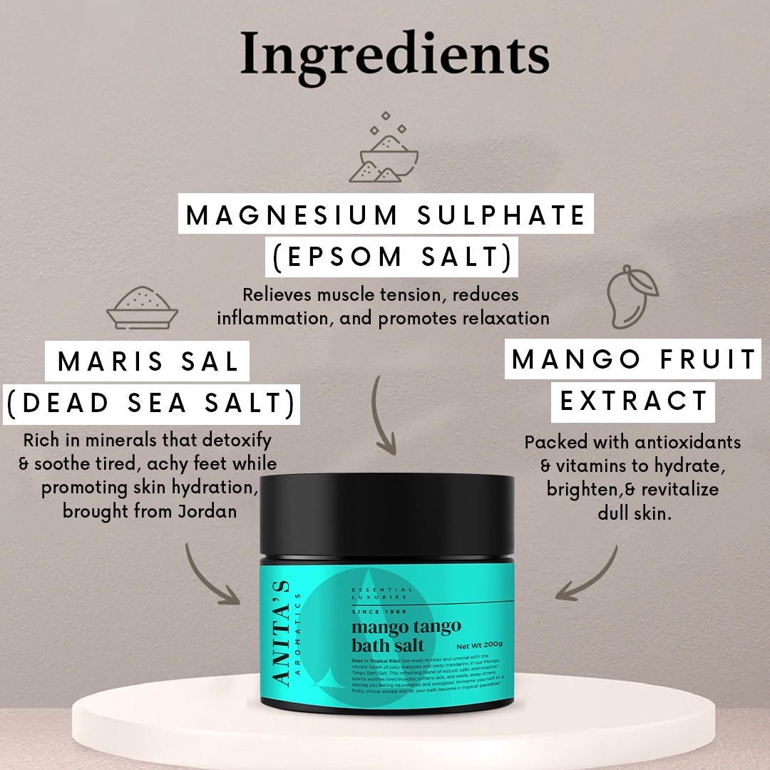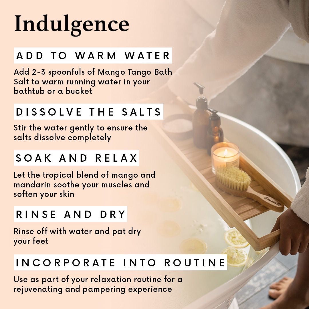 Immerse yourself in a tropical escape with Mango Tango Bath Salt. Infused with the nourishing benefits of mango fruit extract, magnesium sulfate and Maris Sal this indulgent bath salt soothes tired muscles and softens skin. Simply add it to warm water to experience deep relaxation and rejuvenation, leaving your skin feeling silky smooth and refreshed. Perfect for a pampering bath experience, the tropical mango and mandarin fragrance will transport you to a tropical paradise, promoting ultimate relaxation and well-being.