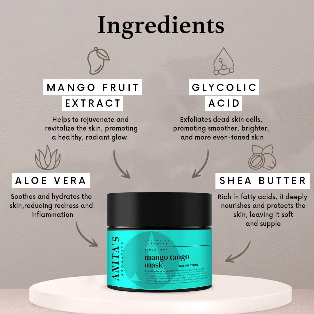 Treat your skin to the tropical luxury of Mango Tango Mask. Enriched with aloe vera, glycolic acid, and mango fruit extract, this revitalizing mask deeply nourishes and smooths your skin. Designed to help rejuvenate and hydrate, it leaves your skin feeling soft, refreshed, and glowing. Perfect for weekly use, the combination of tropical ingredients helps restore your skin’s natural radiance and softness, providing a luxurious spa-like experience at home.