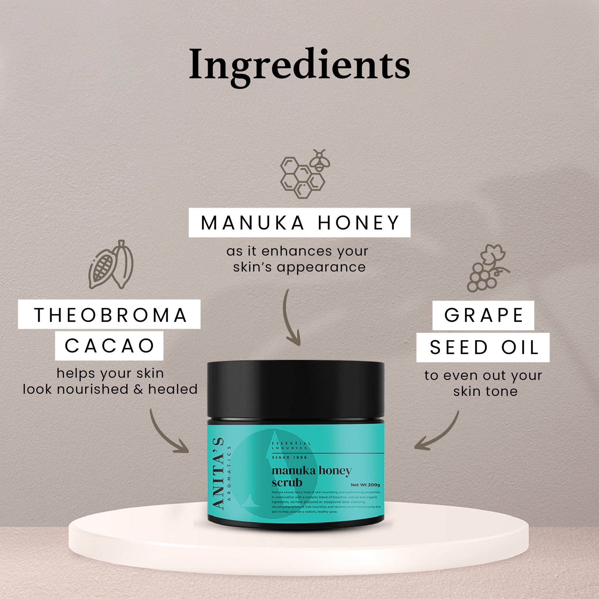 Manuka is a rare form of honey from the nectar of the Manuka plant native to New Zealand. Manuka Honey is known for its strong antifungal, antioxidant, antiseptic, and anti-inflammatory properties. Apart from being a rear source of skin glow, it also has a great healing effect on day to day bodily injuries.