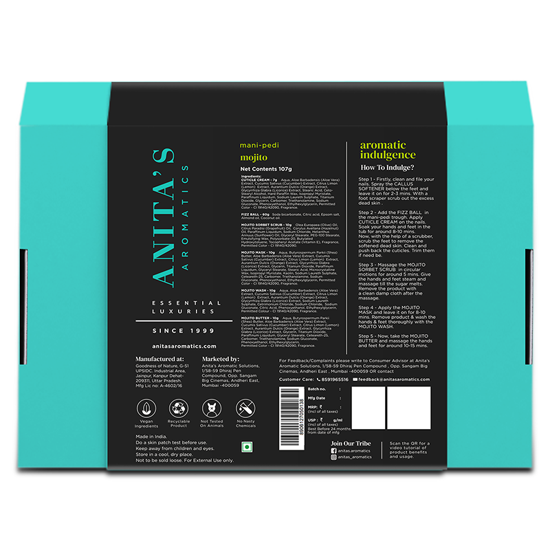 For Feedback/Complaints: Please write to Consumer Advisor at Anita’s Aromatic Solutions, 1/58-59 Dhiraj Pen Compound, Opp. Sangam Big Cinemas, Andheri East, Mumbai - 400059