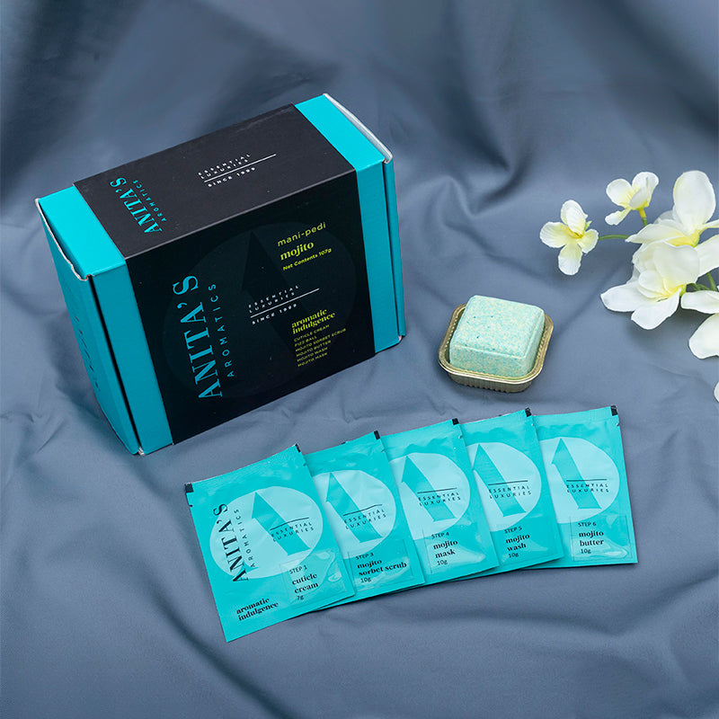 The perfect way to enjoy a holiday, when an actual vacation is too far away! The refreshing combination of lemon and mint will make you feel like you are on a yacht, cruising away to a beautiful sunset. The vitamins in this Mojito Kit moisturises, nourishes and rejuvenates your skin, while the peptides boost collagen production and reduce inflammation. The soothing ice-cube shaped bath bomb is always a source of delight. Cheers to happy hands and feet!
