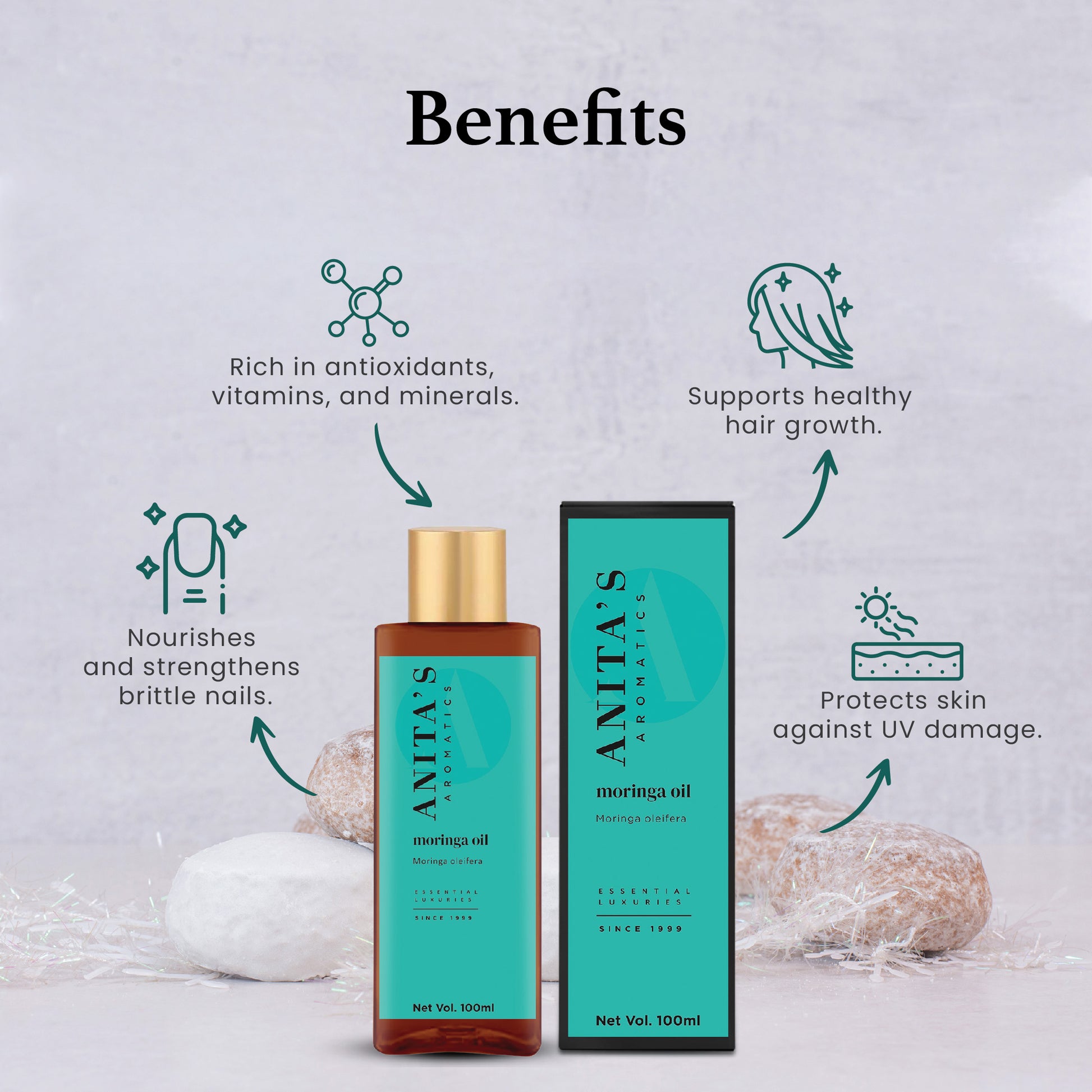 Marketed by: Anita’s Aromatic Solutions, 1/58-59 Dhiraj Pen Compound, Opp. Sangam Big Cinemas, Andheri East, Mumbai - 400059