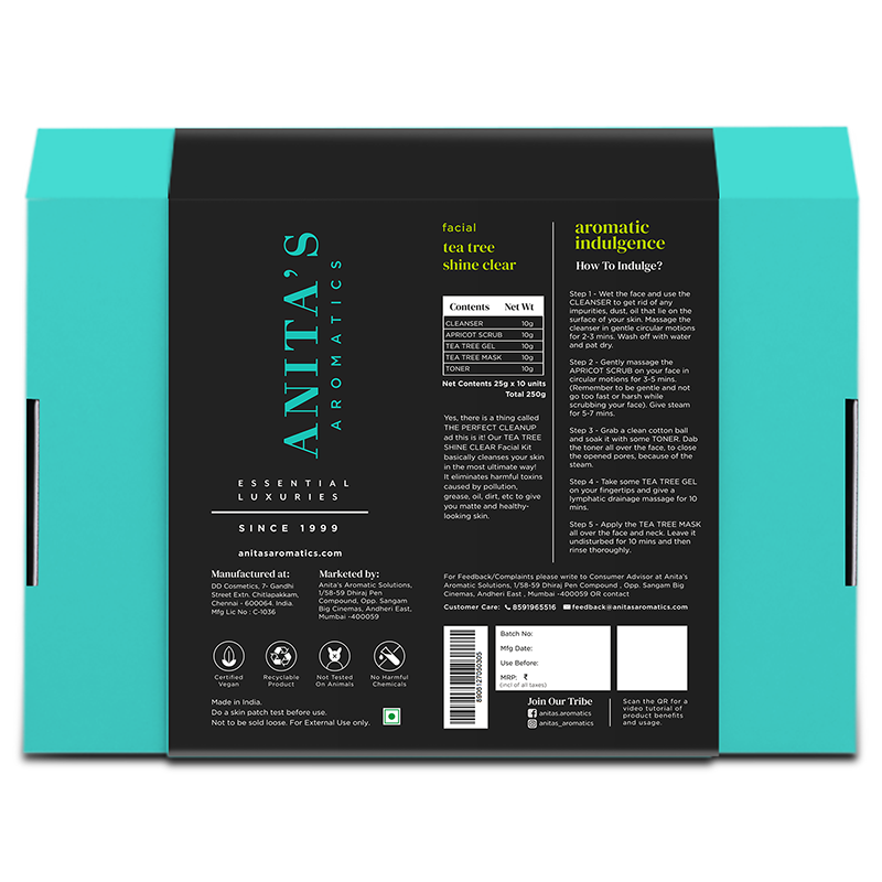 If you are looking for the perfect cleanup, this is it. The Tea Tree Shine Clear Facial kit does a wholesome job of cleansing your skin, ridding it of all toxins caused by pollution, be it grease, oil or dirt, this kit has your skin. You are only left with a matte and healthy looking skin.